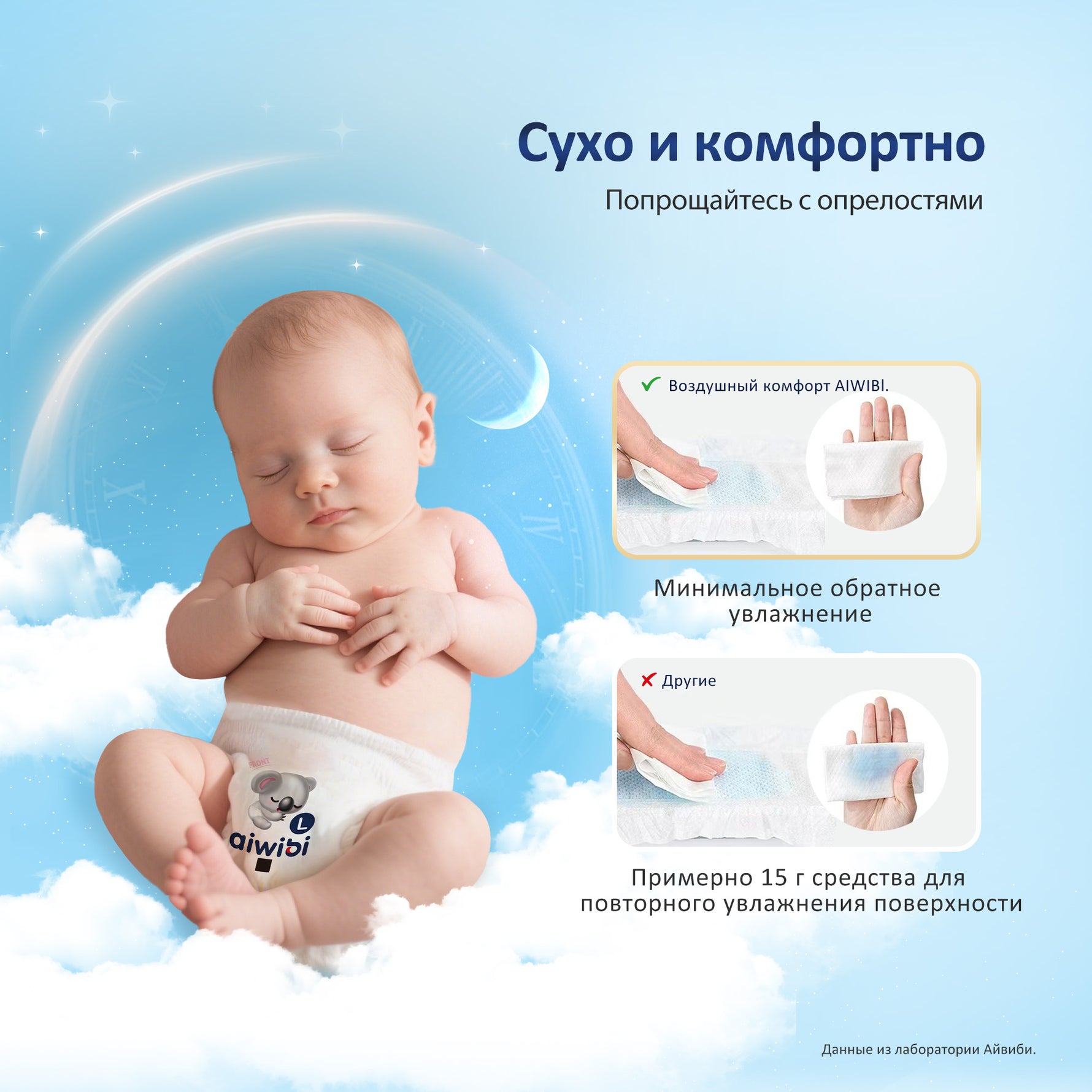 Один подгузник, сухая защита на всю ночь и спокойствие мамы.