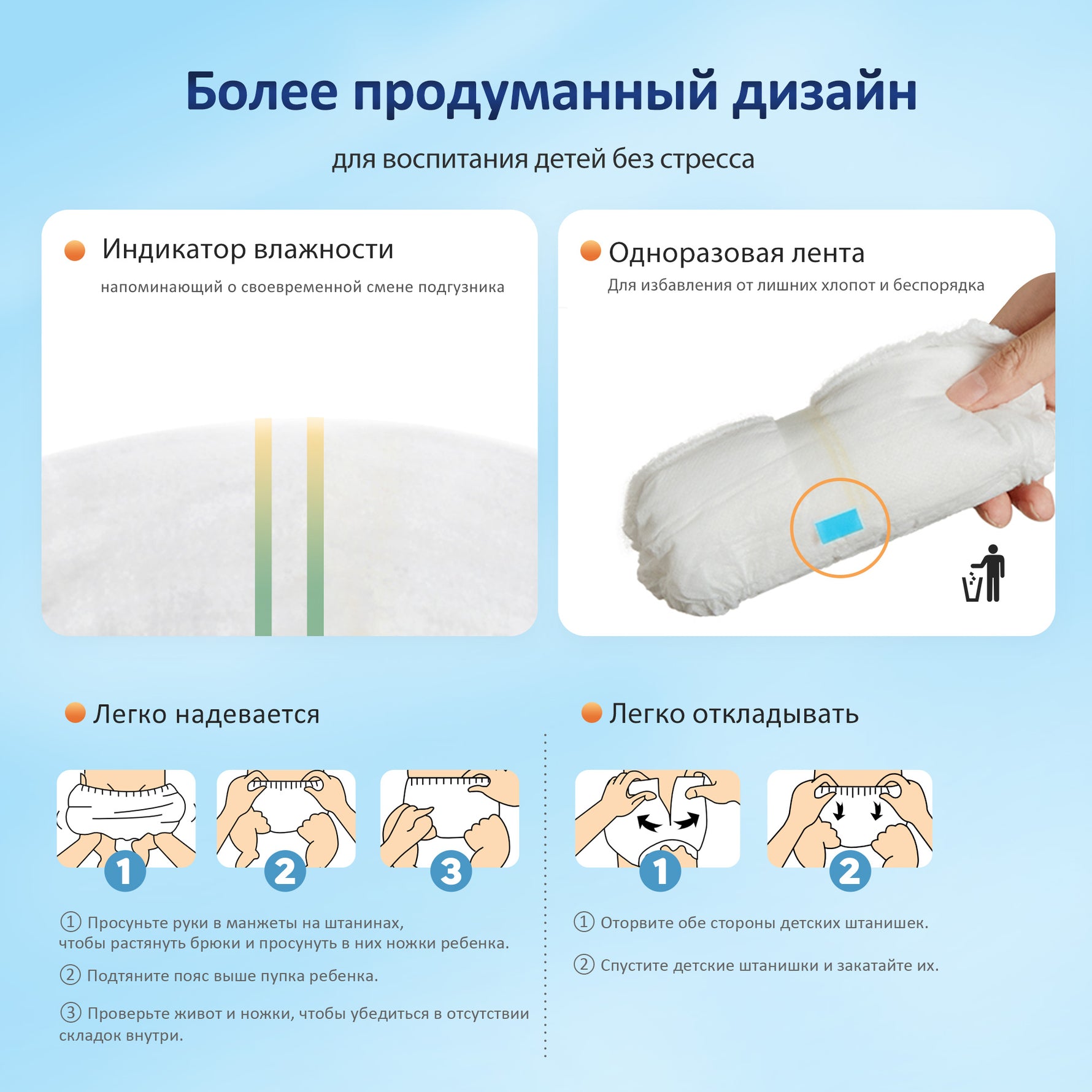- Некоторые виды сырья могут иметь легкий естественный запах. Если вы чувствительны к запахам, вы можете проветрить подгузники перед использованием.